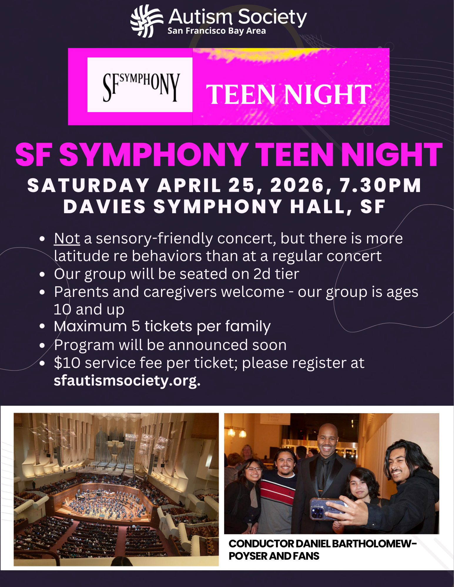 What: Not a sensory-friendly concert but there is more latitude regarding behaviors. We have reserved a section for our families in the 2d tier. Please see sfsymphony.org for updates about the program.